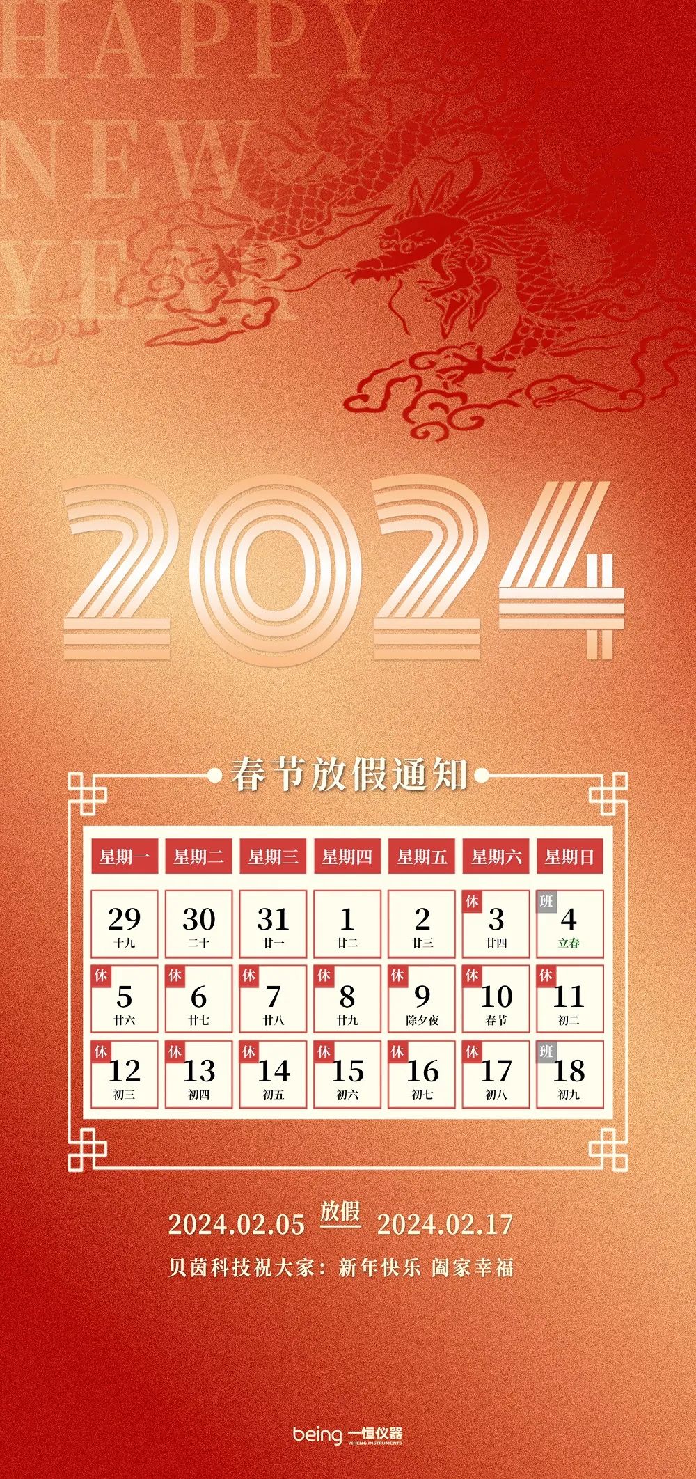 您(nín)當前的位置:首頁 > 新(xīn)聞資訊 > 貝茵科技2024春節放假
