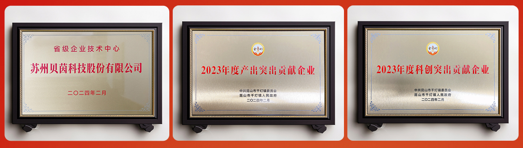 蘇州貝茵科技股份(fèn)有限公(gōng)司作為企業代表出席(xí)以上會議,獲得“省級企業技術中(zhōng)心”榮譽授牌,並喜獲“千燈鎮2023年(nián)度產出突出貢獻企業”和“千(qiān)燈鎮2023年度科(kē)創突出貢獻企業”兩項(xiàng)殊榮。