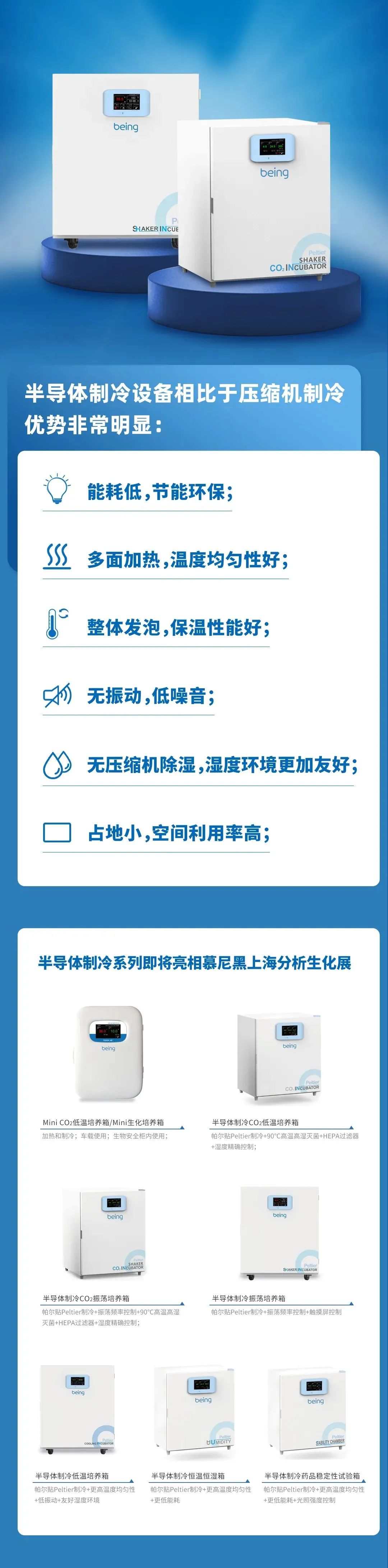 2024-11-04 | 文章來源(yuán): | 點擊率: 第十二屆(jiè)慕尼黑上海分析生化展(analytica China 2024)即將於2024年11月18-20日在上海(hǎi)新國(guó)際博覽中心拉開(kāi)帷幕。我們即將再度與大家相聚於展會現場。屆時,我們將現場展示半(bàn)導體製冷儀器係列設備。(半導體製冷儀器設備是(shì)溫濕度(dù)箱體設備中用帕(pà)爾貼Peltier製冷模塊代替壓縮機製冷,並結合箱體加(jiā)熱控製技術,實現製冷儀器(qì)設備精確的溫度控製。)